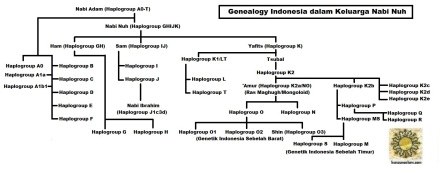 Coba saintis (googling saintis) muslim jangan asal copas dari hipotesa (kata halus dari ‘karangan’) Yahudi yang berasal dari Injil Ibrani (Tanakh). Dalam Injil Ibrani disebutkan Yafet, Sem & Ham adalah nenek moyang dari orang Asia, Africa dan Eropa, sekarang stelah ada peta genetic mereka coba2 lagi menyambung2kan. Coba dalami sendiri dari pemetaan genetic yang sudah dilakukan barat. Lebih baik lagi jangan asal ambil dari sumber barat, coba petakan sendiri. Kita punya source dana yang besar di arab harusnya kita bisa.
