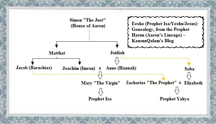 Bahaullah in Genealogy, information obtained from Maryam [mother of Eesho (Prophet Isa/Yeshu/Jesus)], both parents are descendants of Onias ben Onias ben Simon ben Onias ben Simon ‘The Just’ (source).