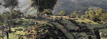 I’m climbing with Dr Natawidjaja up the steep slope of a 300-ft high step-pyramid set amidst a magical landscape of volcanoes, mountains and jungles interspersed with paddy fields and tea plantations a hundred miles from the city of Bandung in West Java, Indonesia [source article].