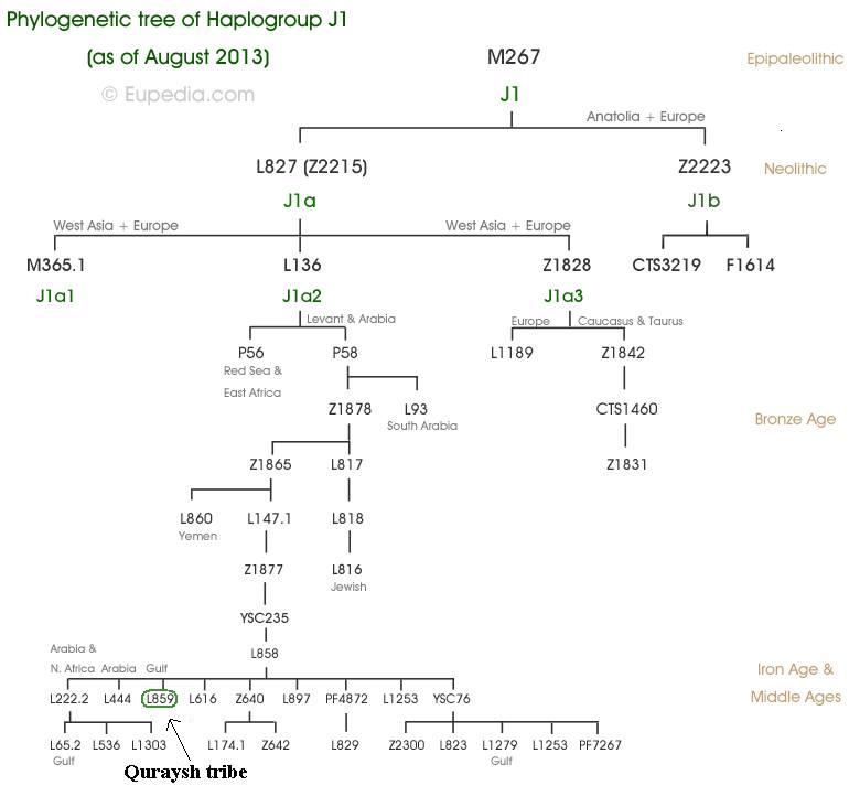 Adapun jalur silsilah kekerabatan L859+ (suku Quraysh), adalah sebagai berikut :