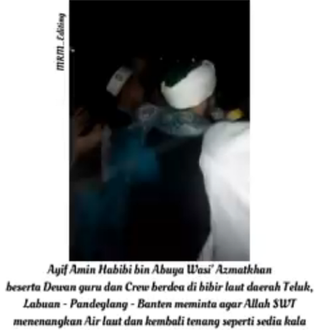 Sekelompok orang dipimpin Kiai Ayif Amin Habibi mendatangi bibir pantai Teluk Labuan Banten, pada 25 Desember 2018 dini hari pukul 01.00 WIB.