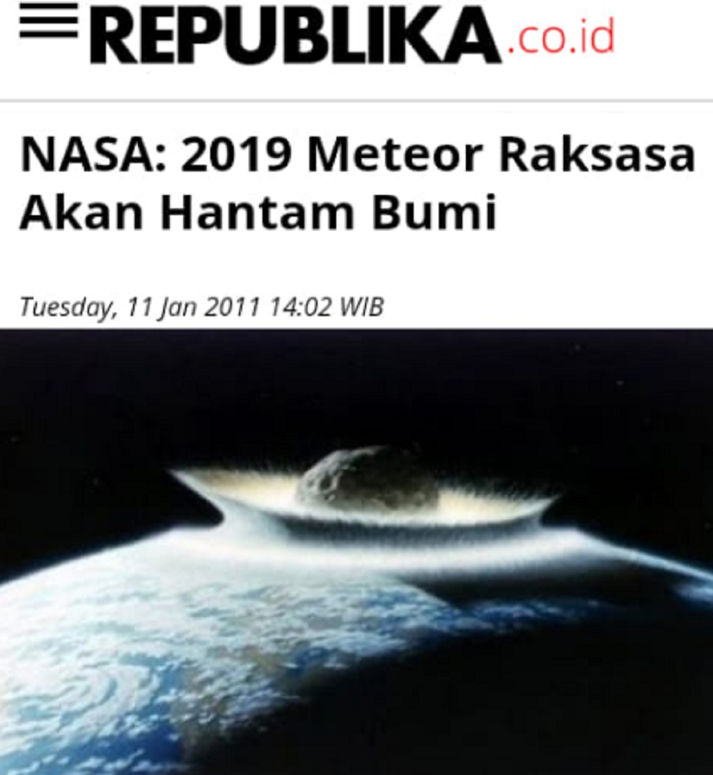 Berita terkait asteroid yang akan menghantam bumi di tahun 2019, sempat membuat heboh publik tanah air, setelah harian republika.co.id kemudian ikut memberitakannya pada 11 Januari 2011.