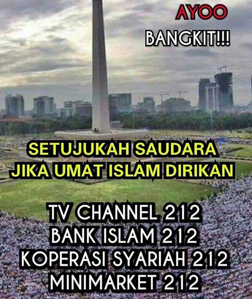 Dalam salah satu postingan di Instagram, Aagym (Ustadz Abdullah Gymnastiar) mengungkapkan perlunya umat muslim mendirikan Bank Islam 212, Koperasi Syariah 212 dan Minimarket 212 (sumber : aagym (instagram)).