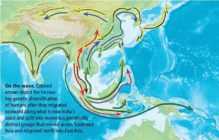 Lalu komponen ini mencapai Taiwan dan Oseania, pada sekitar 8.000 tahun yang lalu. Ini membuktikan bahwa global warming dan sea-level rises pada ujung Zaman Es 14.000–7.000 tahun yang lalu, sebagai penggerak utama human diversity di wilayah ini (Sumber : mail-archive).
