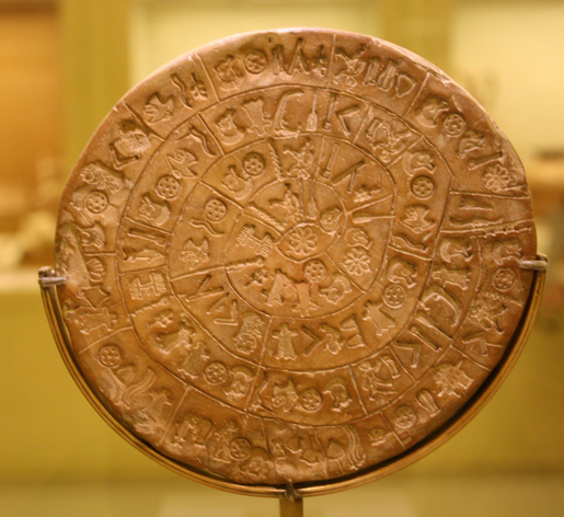 Discovered by Italian archaeologist Luigi Pernier in 1908, the mysterious fired clay disk, which is thought to date back almost 4,000 years to 1,700 BC, originates from the Minoan palace of Phaistos on the Greek island of Crete.