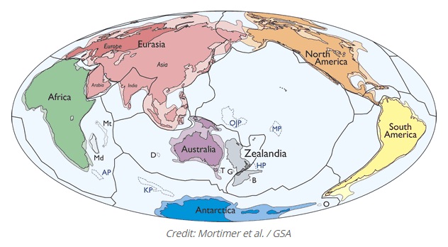 Sebuah laporan yang baru dipublikasikan oleh Geological Society of America menyatakan bahwa beberapa pulau, terutama Selandia Baru dan Kaledonia Baru, dihubungkan oleh kerak benua yang terendam, dimana secara geologis terpisah, dari Benua Australia dan Antartika (sumber : watchers.news).