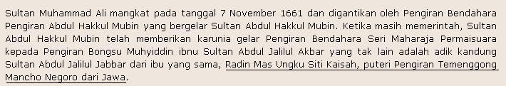 Sedangkan Silsilah Sultan Muhyiddin sampai kepada Sultan Syarif Ali adalah sebagai berikut….
