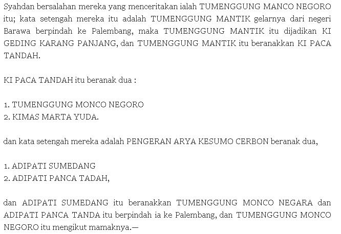 4. Adipati Panca Tanda (dalam silsilah Palembang disebut juga Ki Paca Tanda, sementara dalam Tarsilah Brunei disebut Pangiran Manchu Tando) [bin]