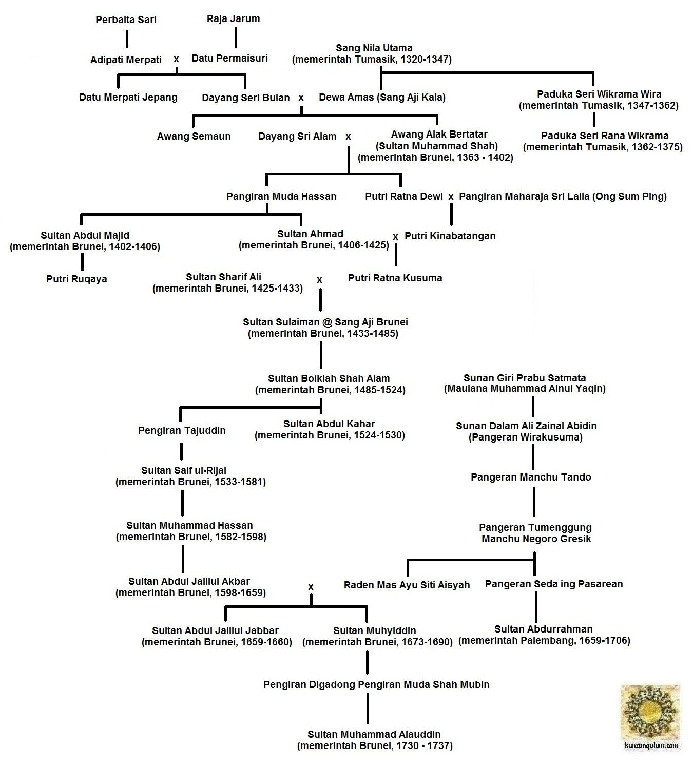 4. Hubungan kekerabatan antara Giri Kedaton, Kesultanan Brunei dan Kesultanan Palembang, dapat dilihat pada diagram silsilah berikut :