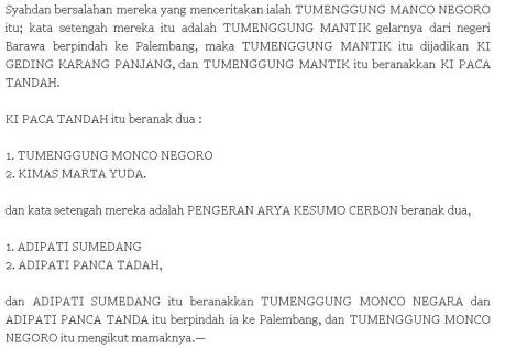 1. Pembahasan berkenaan dengan beragam versi silsilah Kesultanan Palembang Darussalam, silahkan membaca artikel ini