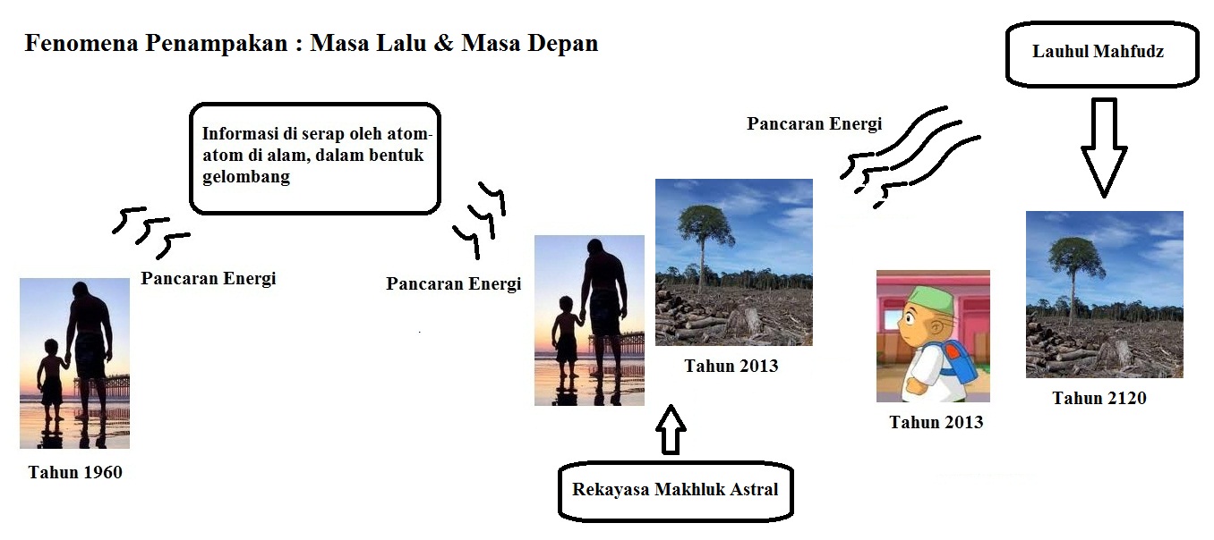 Skema Penampakan yang berasal dari masa lalu maupun masa mendatang, kira-kira seperti ini :
