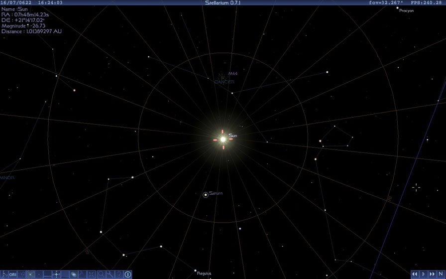 1. Posisi Matahari - Bulan - Saturnus - Venus - Merkurius - Mars - Uranus - Jupiter, di lihat dari Kota Makkah (Bumi), tanggal 16 Juli 622 Masehi (1 Muharram 1 Hijriyah), pukul 12 : 27 waktu setempat, yakni saat matahari tepat berada di atas Ka’bah….