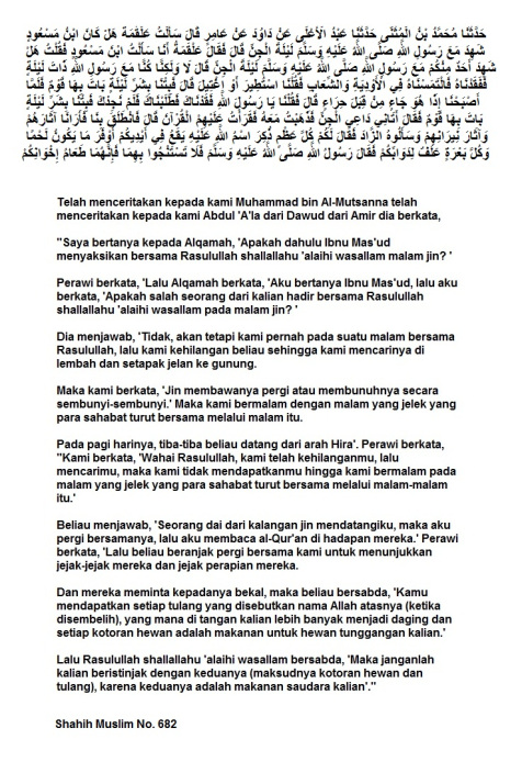Di dalam riwayat Shahih Muslim, diceritakan tentang dakwah Nabi kepada Bangsa Jin.