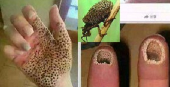 Sementara gambar tangan yang penuh lubang, ternyata hasil rekayasa, sebagaimana terlihat dalam video berikut :
