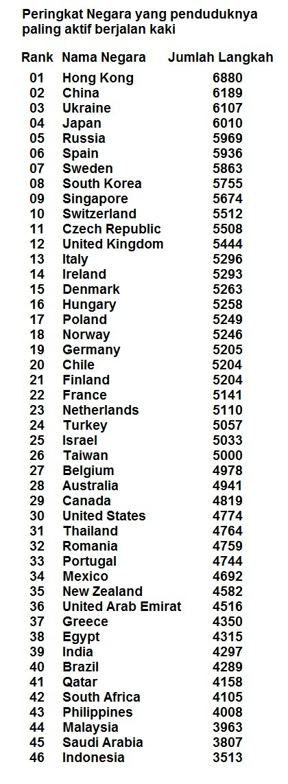 Jawaban karena orang Indonesia, merupakan penduduk yang paling malas berjalan kaki di dunia.