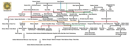 2. Dengan melakukan perbandingan silsilah dari beberapa sumber, maka diperoleh bagan kekerabatan Kesultanan Palembang Darussalam adalah sebagai berikut: