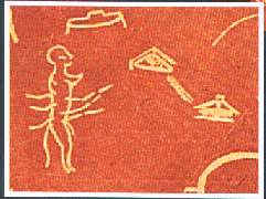 Pada lukisan di atas, yang berasal dari masa ribuan tahun yang silam, terlihat, umat manusia telah mengenal teknologi antariksa (bukti-bukti arkeologi, yang lain bisa klik disini). Nampaknya, umat manusia mengalami kemunduran teknologi, diperkirakan disebabkan oleh kehancuran peradaban akibat dari peperangan dan bencana alam.