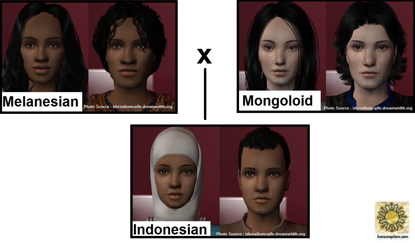 Berpedoman kepada illustrasi di atas, kemungkinan sebagian besar Bangsa Indonesia adalah keturunan Ras Australomelanesid dan Ras Mongoloid, dengan analisa sebagai berikut :