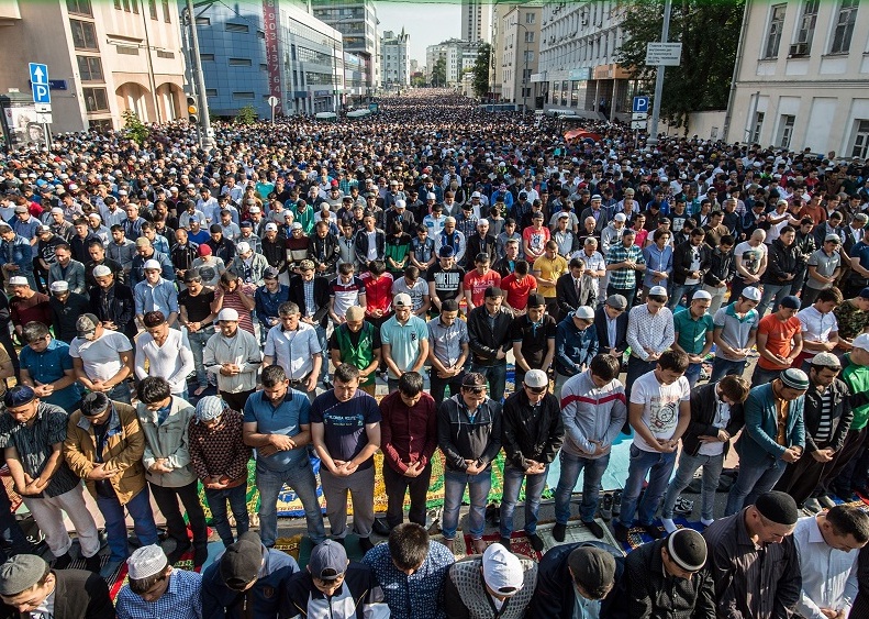 Diperkirakan ratusan ribu muslimin Moskow (Rusia), menghadiri sholat iedul fitri 1 Syawal 1436H waktu setempat, sebagaimana diberitakan oleh Media Massa Rusia Tvrain.ru (link).