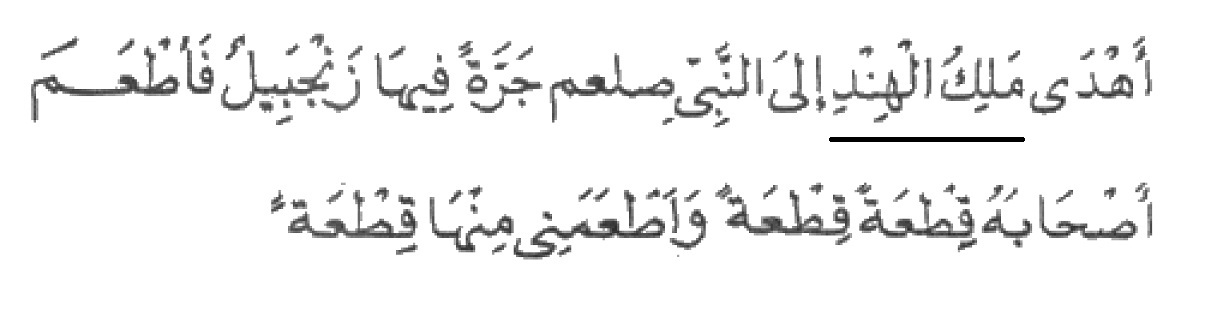 “Seorang Malik al-Hind telah mengirimkan kepada Nabi shallallahu alaihi wa sallam sebuah tembikar yang berisi jahe.