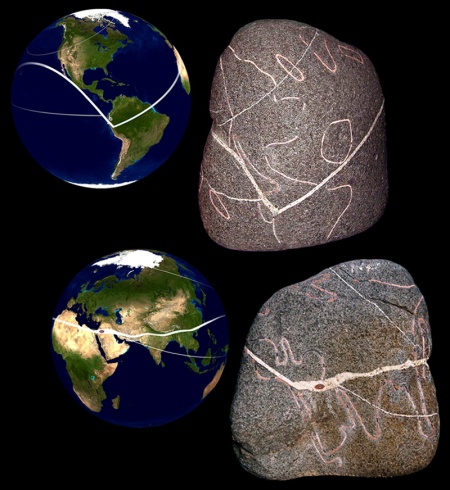 Lempengan batu misterius dari La Manna ini, nampaknya menggambarkan geografis benua Amerika, sebagian Eropa, Asia dan Afrika.