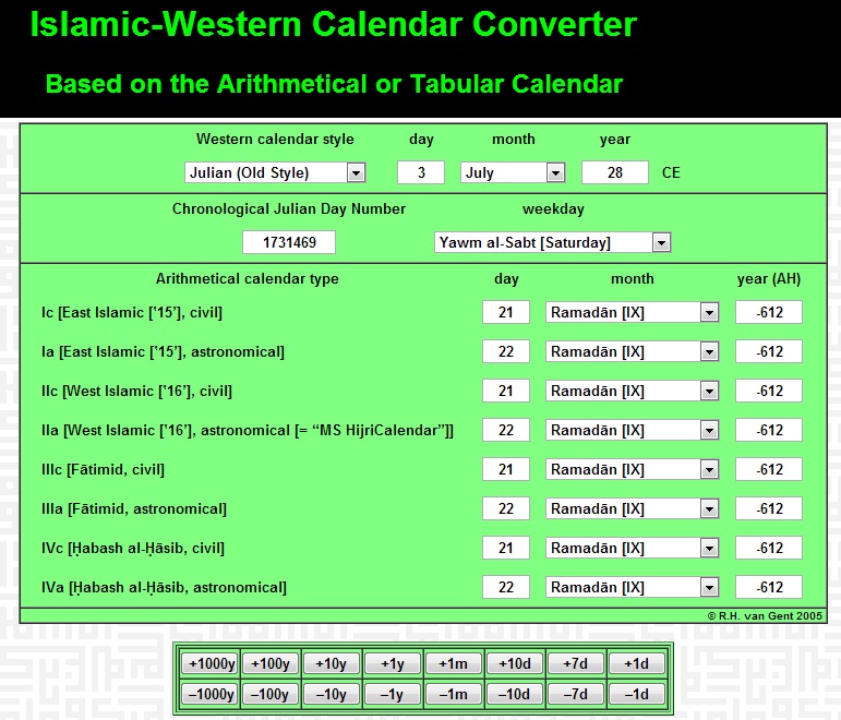 Jika masa turunnya wahyu pertama kepada Nabi Muhammad dalam Kalender Julian : 1.944.089
